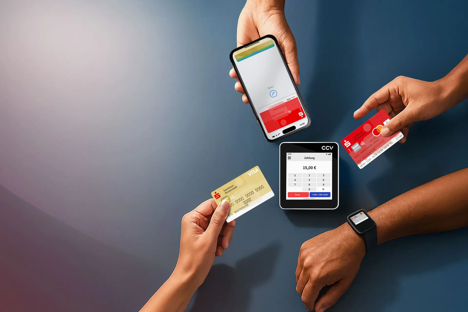 Die S-POS App unterstützt sämtliche kontaktlose Zahlungen – girocard, Debit- und Kreditkarten, Zahlungen per Smartphone, Smartwatch oder Wallet sowie optische Bezahlverfahren.